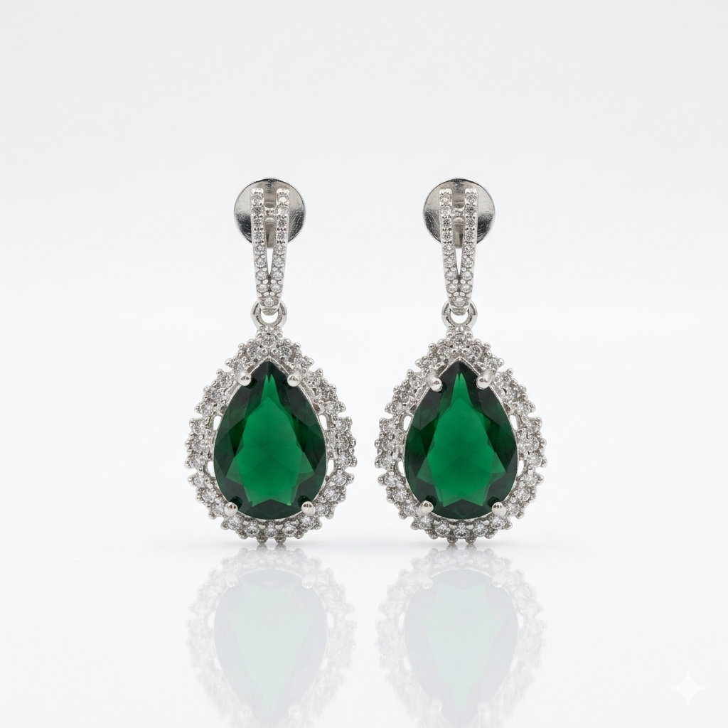 Material: Premium artificial jewelry set with rich green stones, featuring a versatile dual-tone (silver and gold) finish.