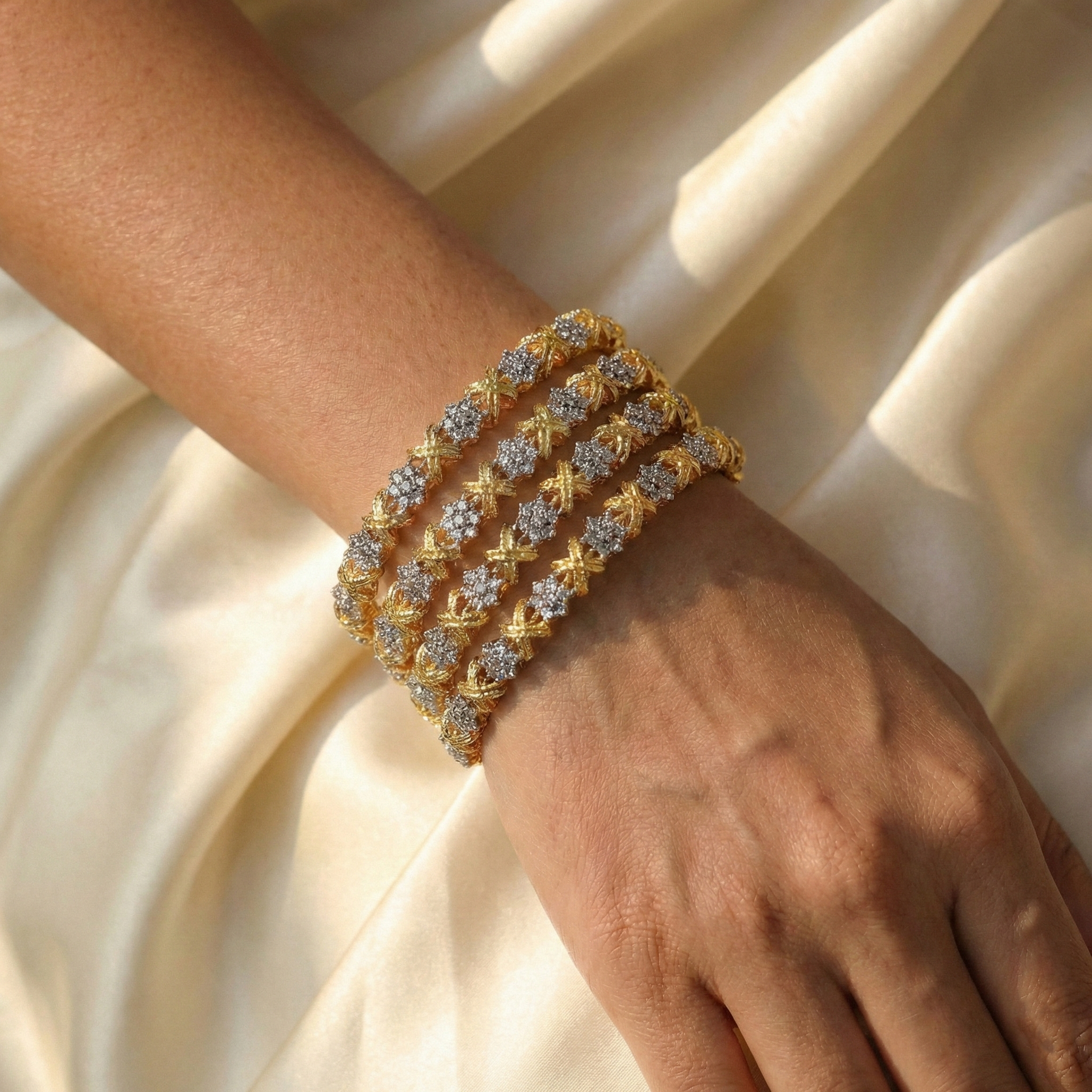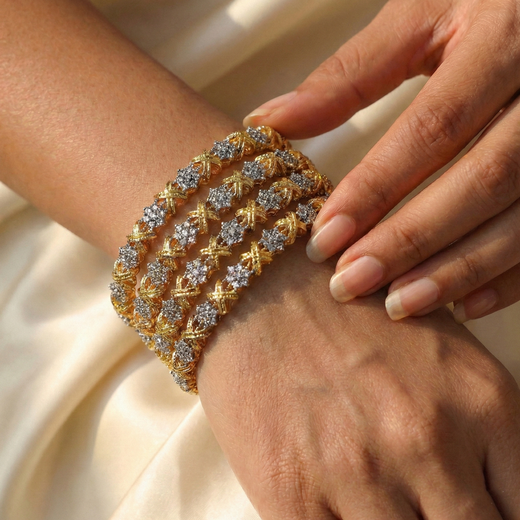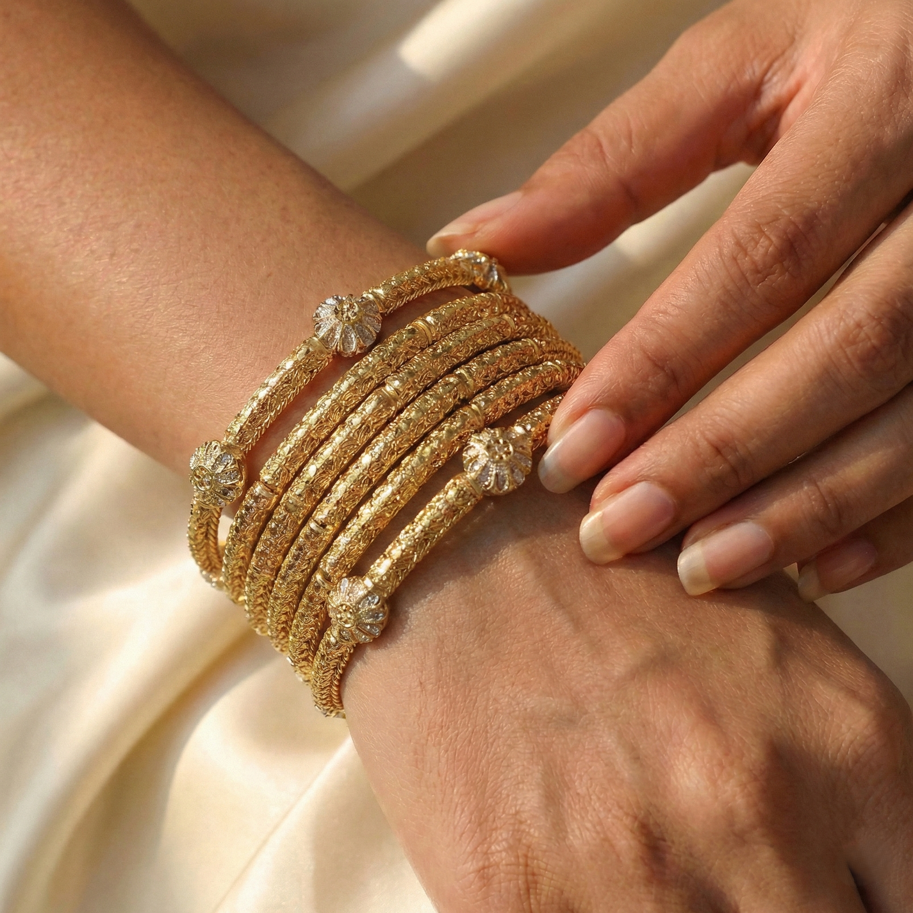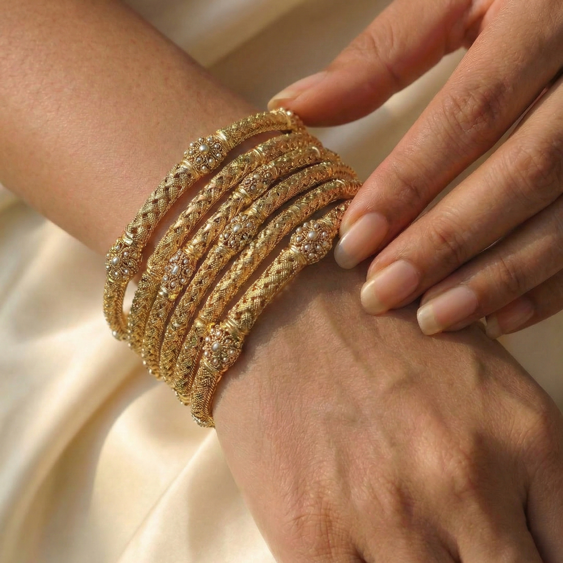 Add a touch of classic glamour to your festive wardrobe with this exquisite gold-finish kara set. Designed for the modern Pakistani woman, these intricately textured artificial bangles feature elegant metallic bead clusters. Perfect for weddings, dholkis, and formal events, this lightweight stack offers a luxurious traditional look to effortlessly complete your favorite outfits.